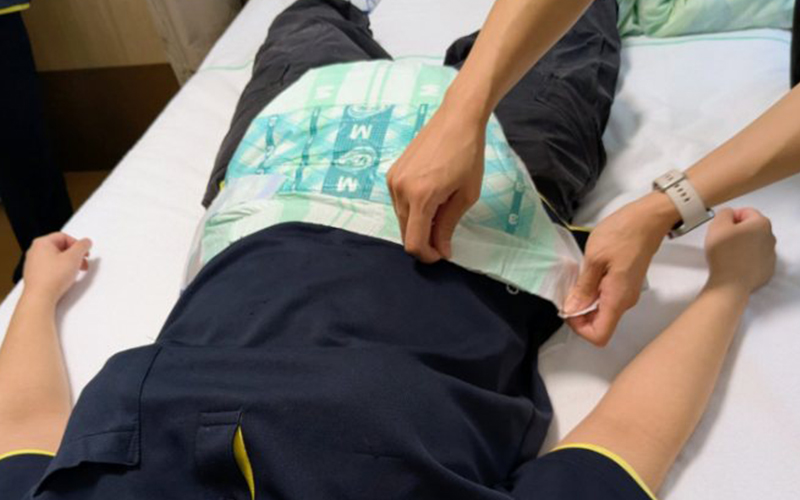 次にオムツの当て方を学びました、オムツについて沢山の事を学ぶことが出来ました。・