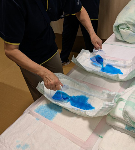 実際にはいてみての感触や、はかせやすい、ぬがせやすい方法を学びました。